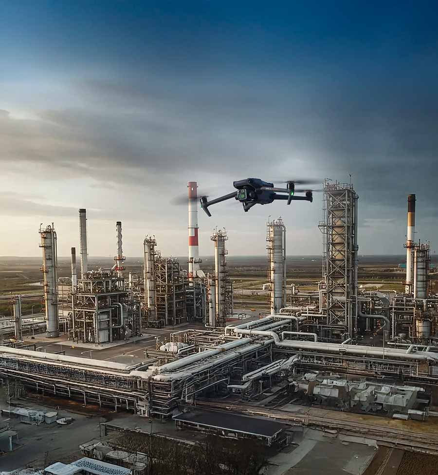 Relevamiento visual y térmico de infraestructuras críticas sin necesidad de detener operaciones ni exponer personal a riesgos.